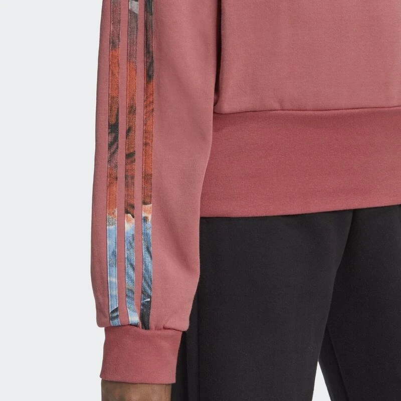Met deze fleurige 3-Stripes krijg je ook zonder een extra shot espresso een flinke dosis energie. De dubbelgebreide adidas hoodie is ruim en zacht, dus zelfs als je sportles gevolgd wordt door een bomvolle agenda, kun je nog steeds sierlijk bewegen. De geribbelde zoom sluit nauw rond je taille en ziet er met alles, van trainingsbroek tot maxi-rok, geweldig uit.Onze katoenen kleding ondersteunt duurzamere katoenproductie.