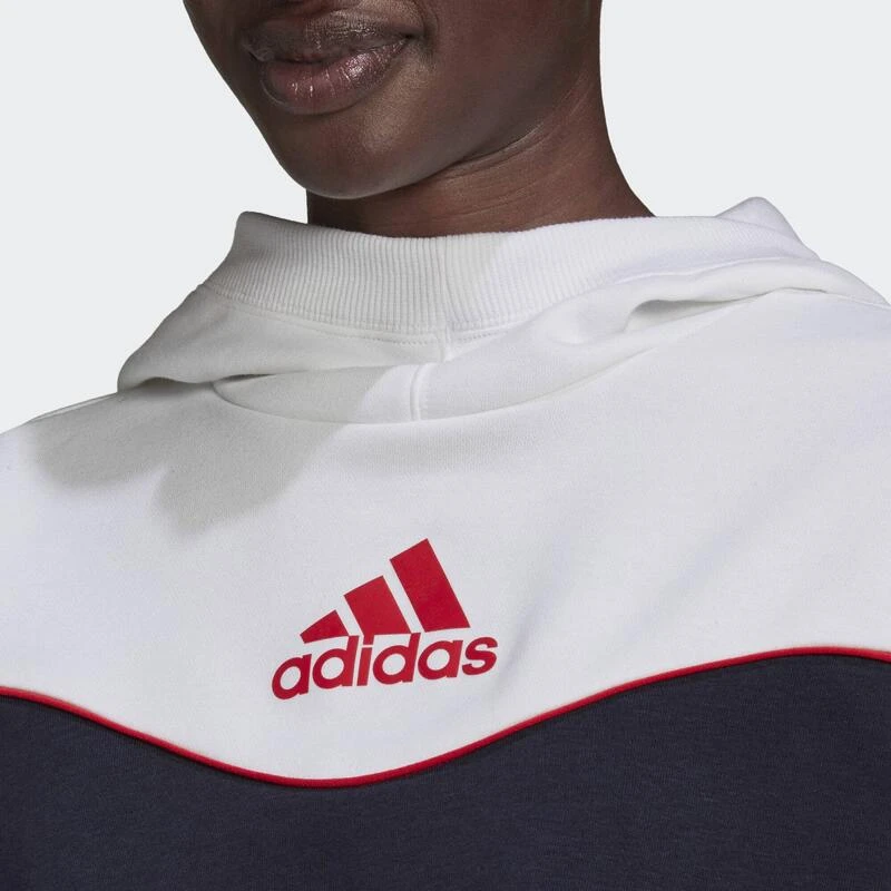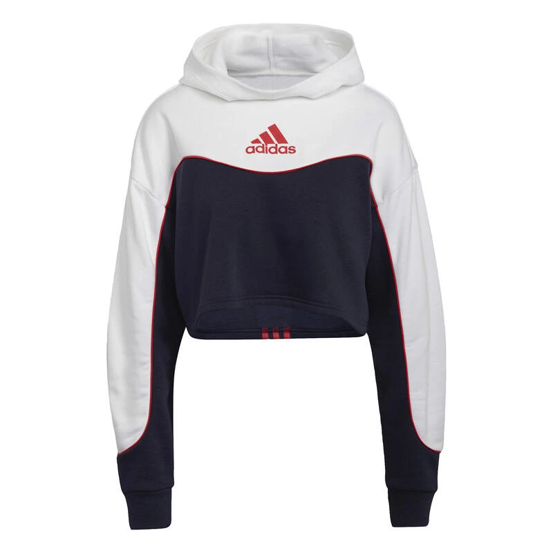 Niet meer bescheiden. De verlaagde schouders, sierlijk gevormde naden en contrasterende kleuren van deze adidas hoodie tillen een casual basic naar nieuwe hoogten. Door het kortere model kun je ‘m dragen zoals het jou uitkomt, waardoor-ie altijd bij je doordeweekse, sportieve stijl past.