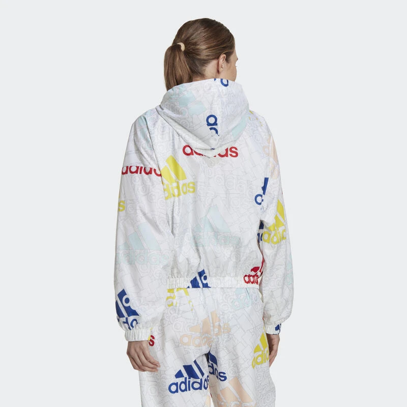 Kleur is een goede reminder om lekkers speels te zijn. Daarom zit dit adidas windjack er helemaal vol mee. adidas Badge of Sport-logo’s in verschillende kleuren laten jouw liefde voor sport en adidas duidelijk zien. Houd ’t casual of combineer dit jack met andere patronen voor een opvallende mix van prints. Door de losvallende, veelzijdige pasvorm creëer je supermakkelijk een chique of juist nonchalante stijl.
