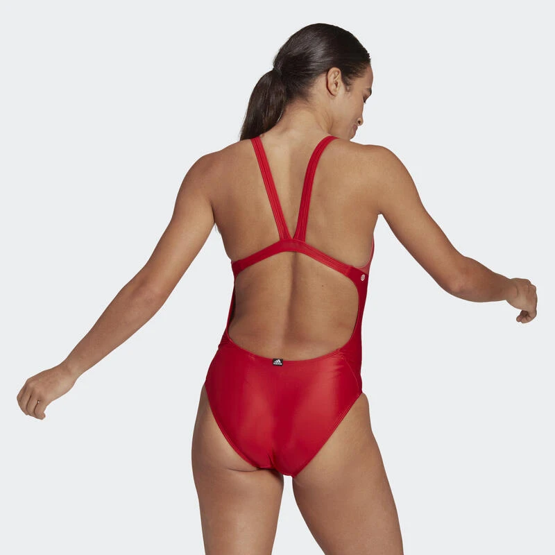 Waarom zou je opgaan in de menigte als je ook op kunt vallen? Rock een gedurfde look in dit sportieve badpak. Een dubbele adidas Badge of Sport bootst het effect na van een weerspiegeling op het water. Het model van zachte, lichte stof heeft ingebouwde buste-ondersteuning om je zelfvertrouwen te geven.Dit kledingstuk is gemaakt van chloorbestendige stof waarin gerecycled garen van ECONYL® is verwerkt.