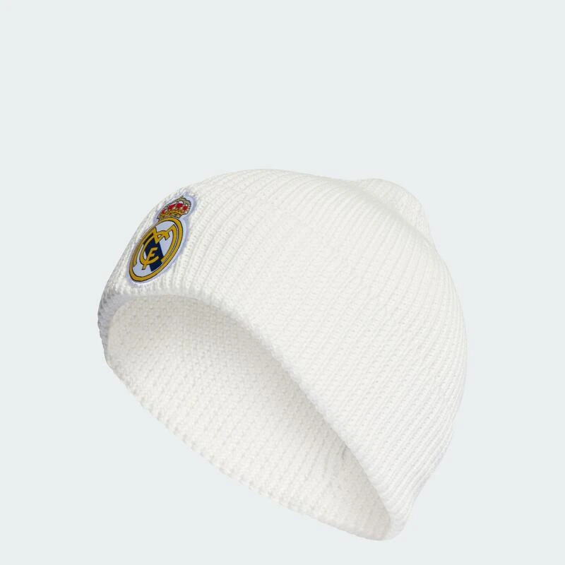 Een zachte beanie voor trotse fans van Real Madrid, gemaakt met gerecycled materiaal.