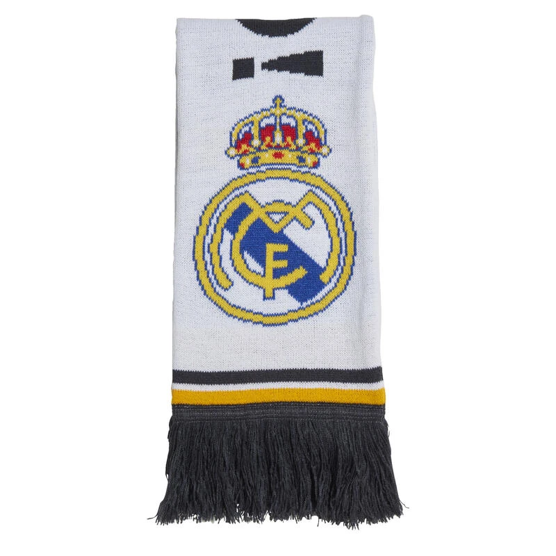Weinig dingen zeggen duidelijker ‘voetbalfan’ dan een traditionele sjaal. Deze adidas Real Madrid sjaal met klassieke franjes aan de uiteinden heeft de clubnaam aan de ene kant en een ‘¡Hala Madrid!’-opschrift aan de andere. Hoe je ‘m ook draagt en wat je er ook mee doet, de platgebreide stof maakt je toewijding een stuk comfortabeler.