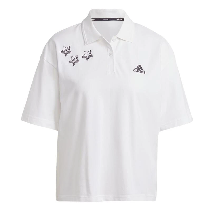 Trek ’t steeds opnieuw uit de kast. Dit adidas poloshirt straalt moeiteloze cool uit. Door het ruime model en het lichtgewicht katoenen piqué kun je makkelijk bewegen. Borduursels in droedelstijl geven dit shirt een speels randje, dus waarom zou je het niet de ene dag combineren met een soepele rok en de volgende dag met een jeans?