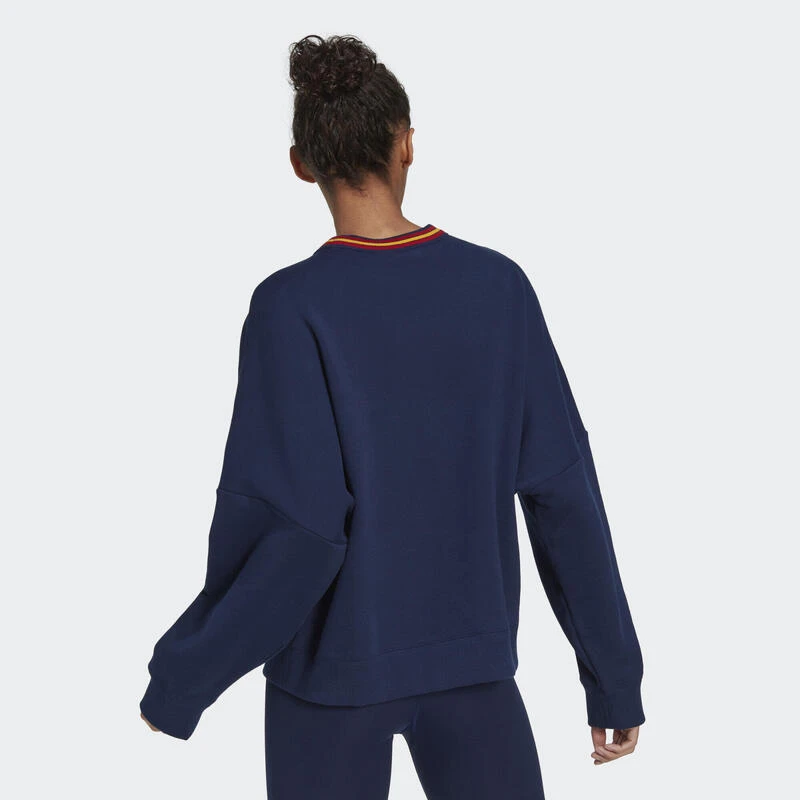 Must-have fanwear voor de relaxte voetbalsupporter. Het losvallende model, de verlaagde schouders en zachte sweaterstof maken dit adidas Spanje sweatshirt de perfecte optie om tussen grote wedstrijden door te relaxen. Een kleine, opgestikte badge is alles wat je nodig hebt om te laten zien wat jouw team voor je betekent.Onze katoenen kleding ondersteunt duurzamere katoenproductie.