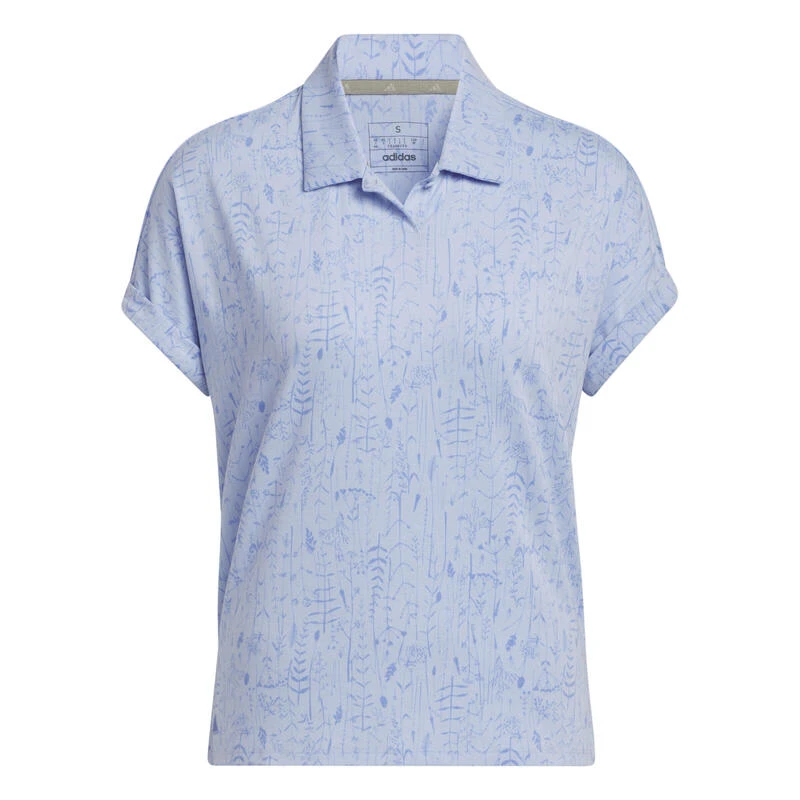 Voeg een vleugje stijl toe aan je spel. Dit adidas golfshirt voelt zacht aan en heeft genoeg stretch om u onbeperkt te laten spelen. Een op de natuur geïnspireerde allover graphic geeft het een opvallende look. Normale pasvorm